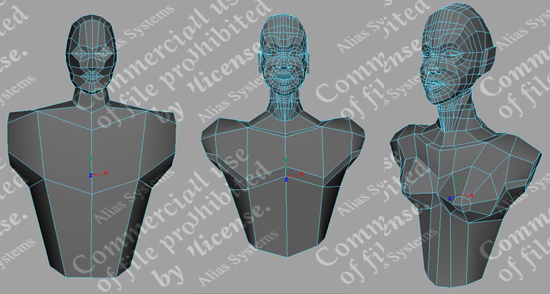 the basic shape of the model in the early stages. I got carried away with adding detail to the head.