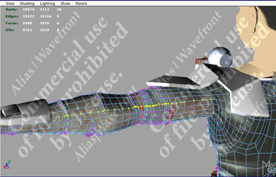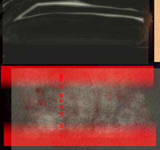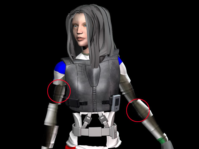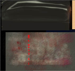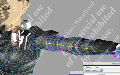 | On the left is the arm texture with the alpha channel in Photoshop. I saved the alpha channel as a separate file for use as a Lightwave texture layer. On the right, the Lightwave Surface Editor settings show the file used as a texture layer. Note the Blending Mode for the top layer is Alpha which controls the transparency of the layer immediately below it. |